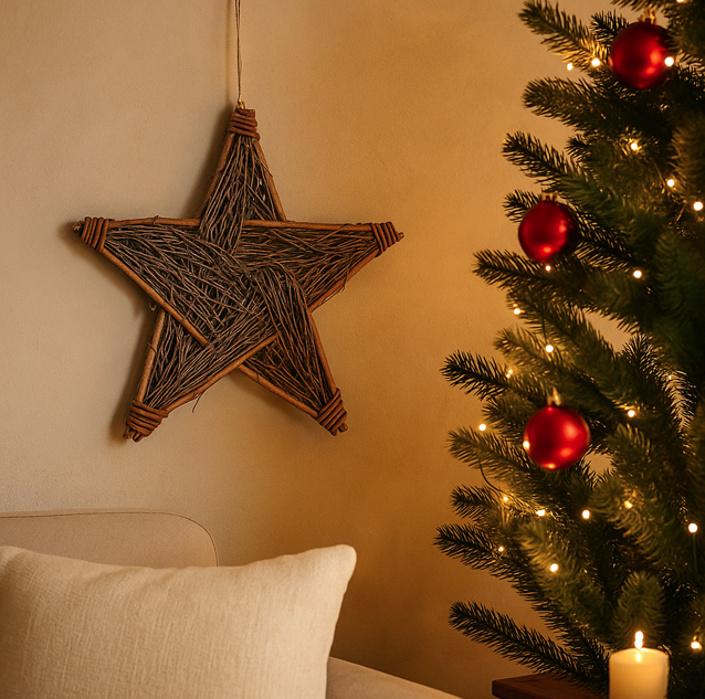 - Gebruik als tafelstuk: Leg de ster op een grote schaal met dennenappels, kerstballen of een kaars in het midden voor een sfeervol middelpunt op de feesttafel.
